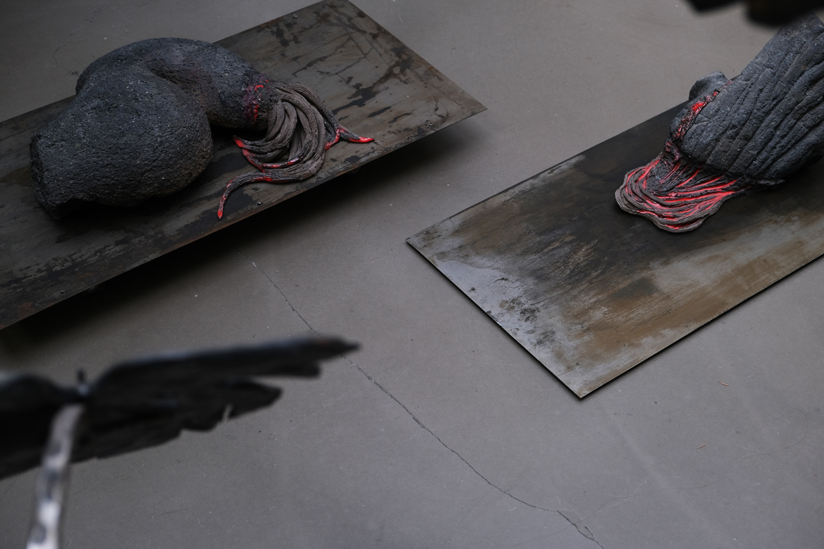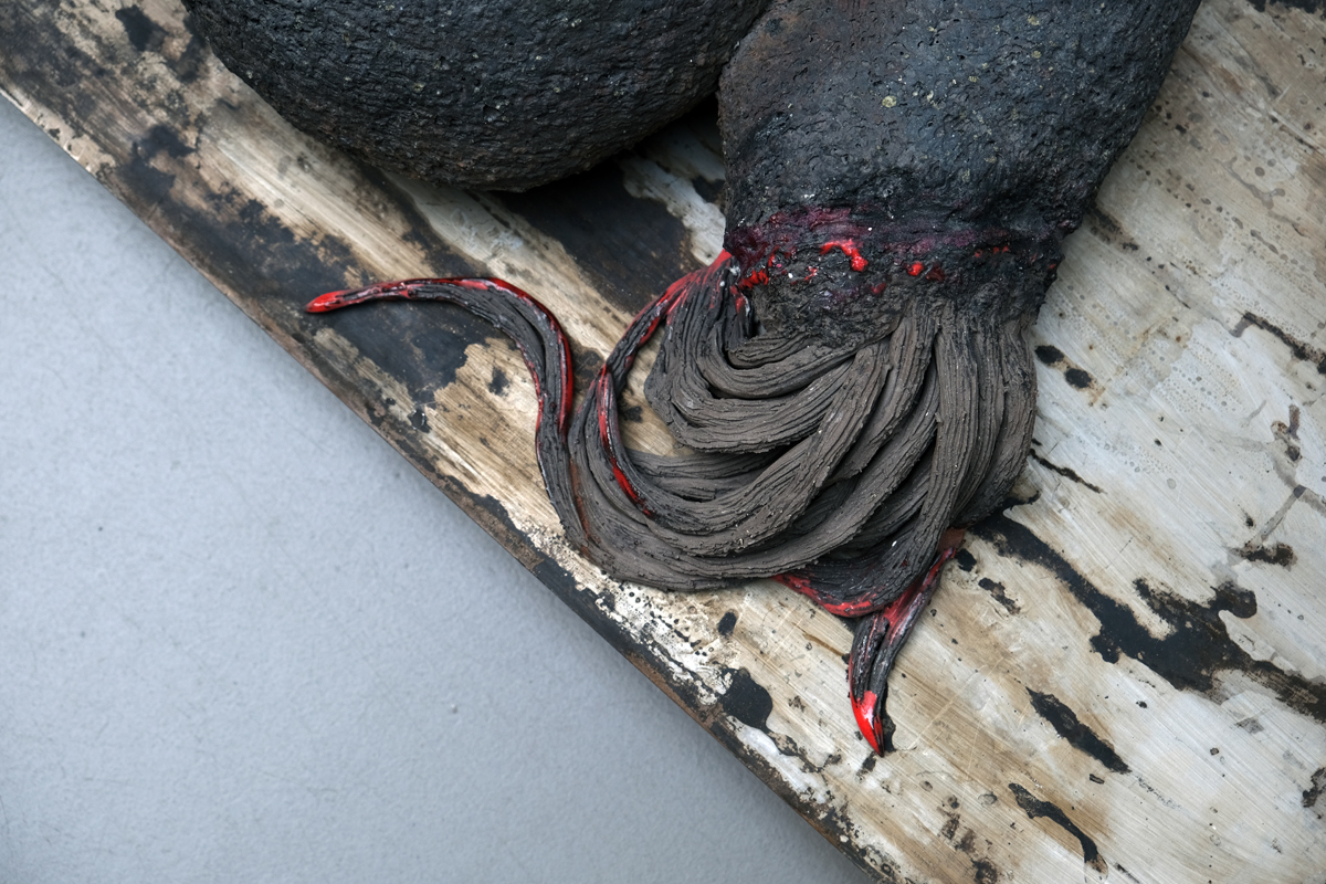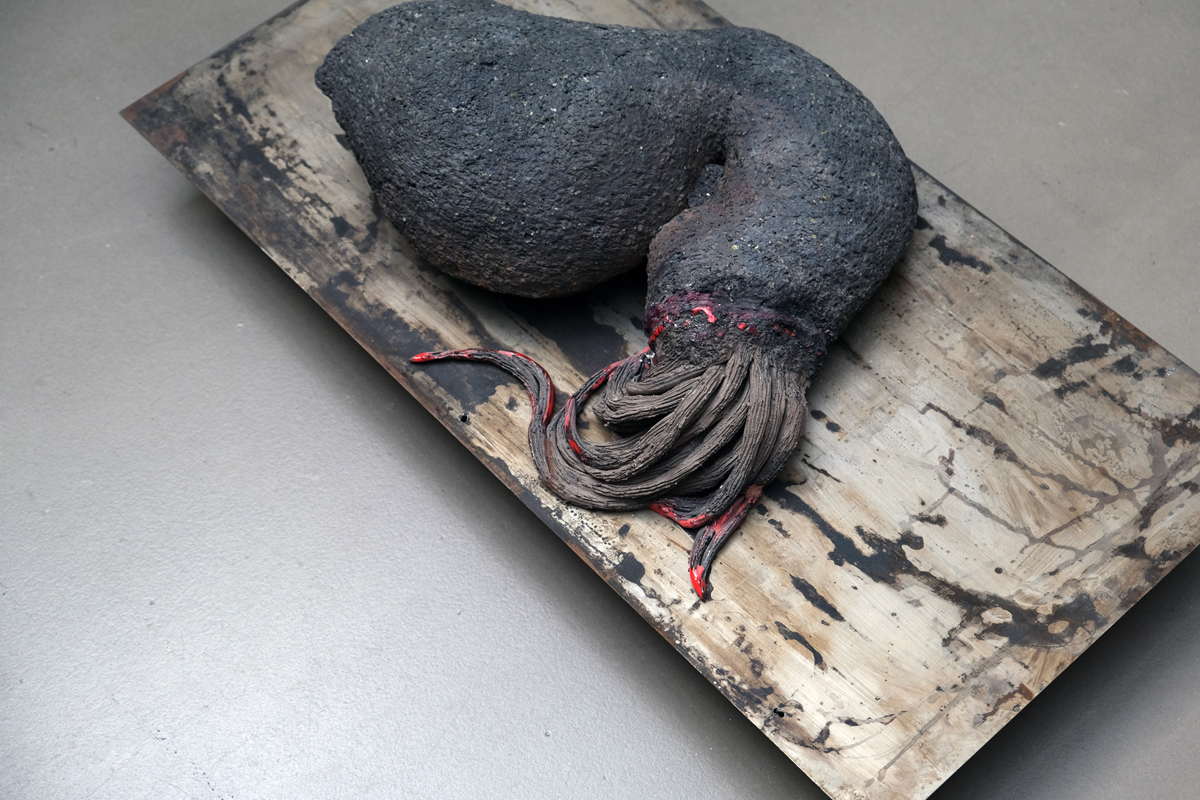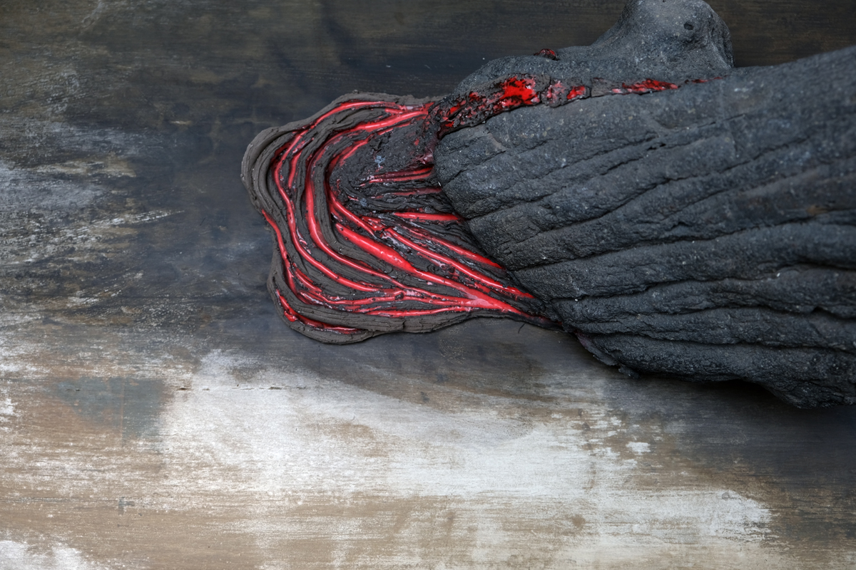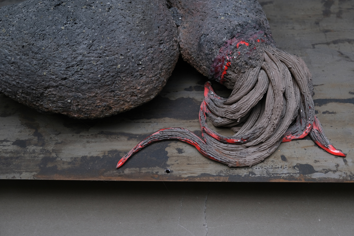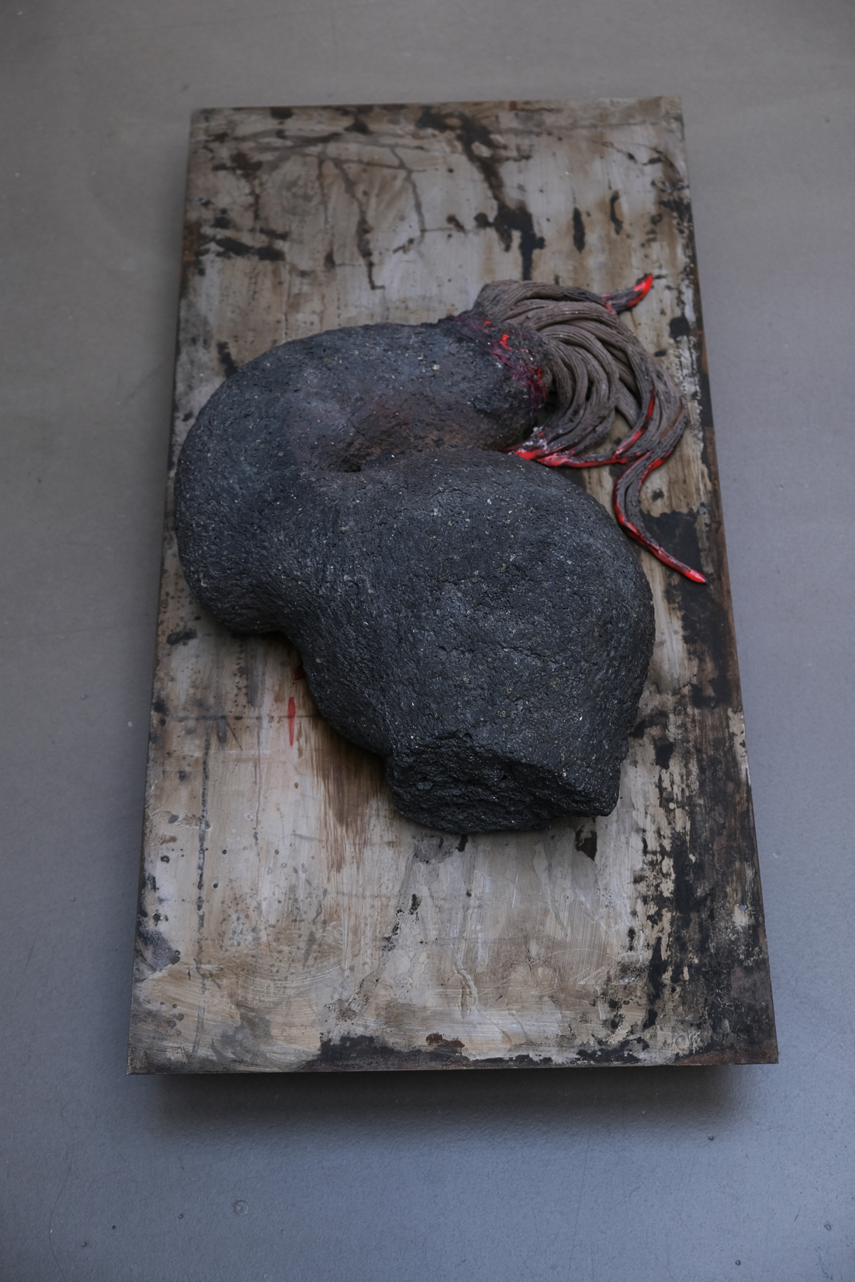 Creative metaphor, as an artist I am a dormant volcano until eruption. Organic process of ceramic material that imitates nature in the kiln with a chemical reaction equivalent to that of the magma chamber. Lava and enamel flow, molten matter and a spirit close to the implosion from which a black rose is born. Lava Rose: Blooms on calcined rock.