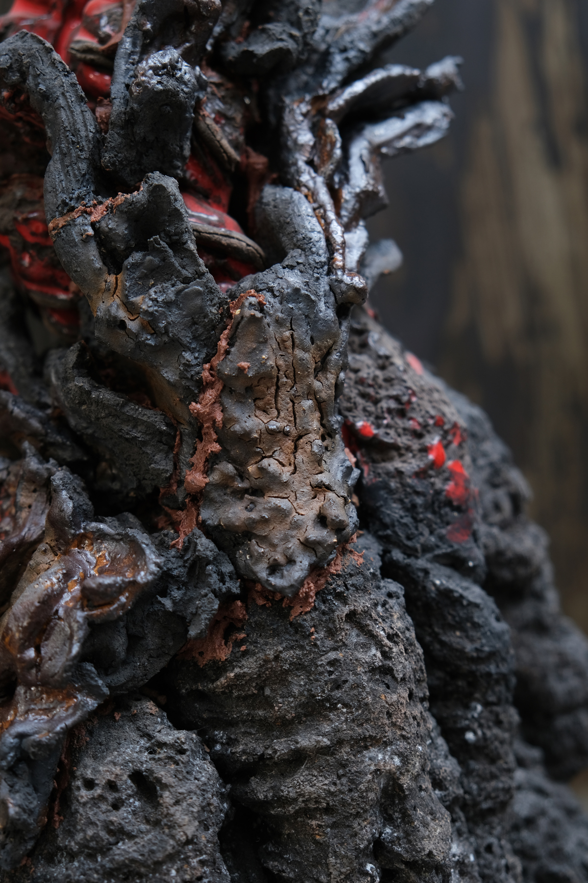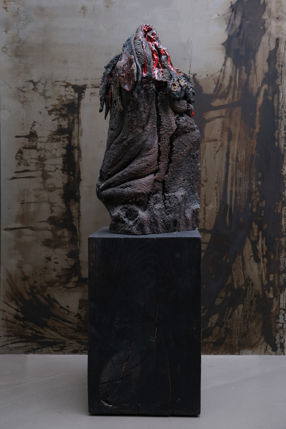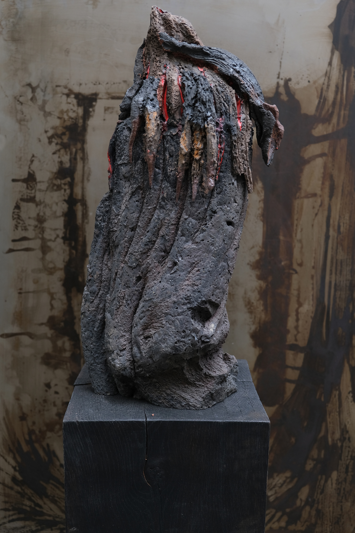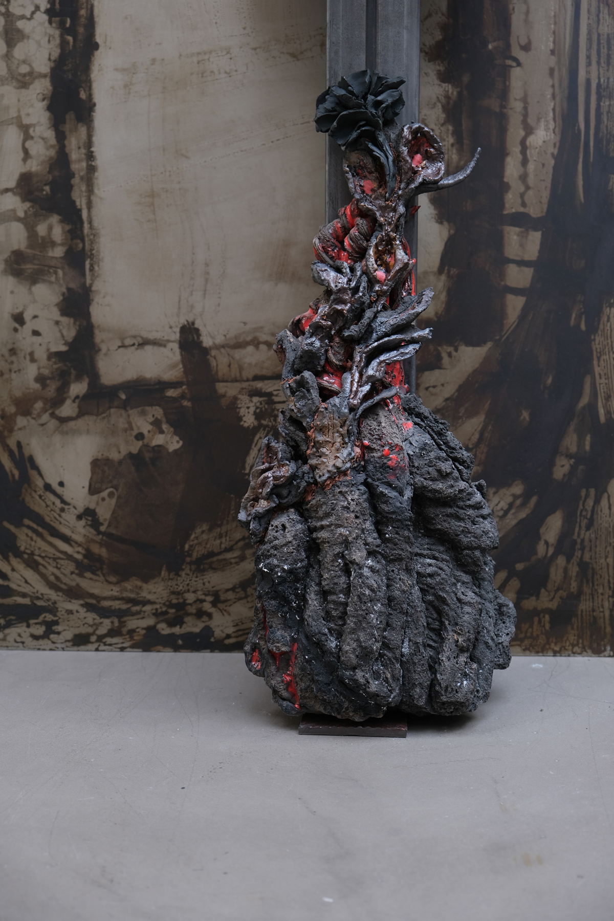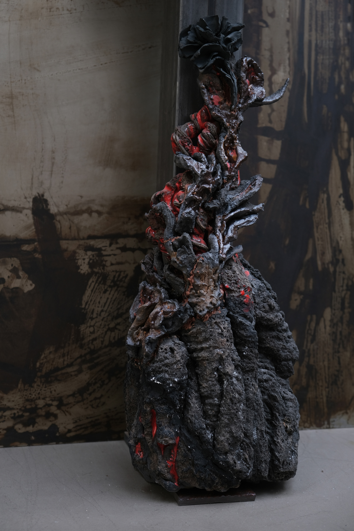 Creative metaphor, as an artist I am a dormant volcano until eruption. Organic process of ceramic material that imitates nature in the kiln with a chemical reaction equivalent to that of the magma chamberLava and enamel flow, molten matter and a spirit close to the implosion from which a black rose is born. Lava Rose: Blooms on calcined rock.