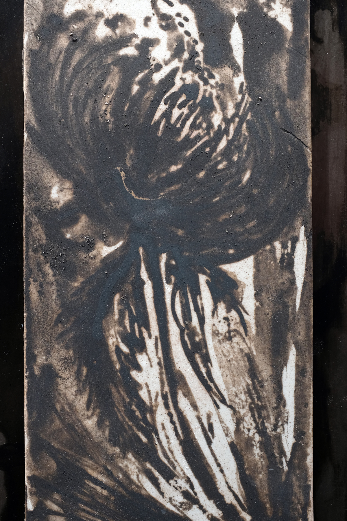 Tableaux de porcelaine peint d’émaux cristallisés & métal oxydé.