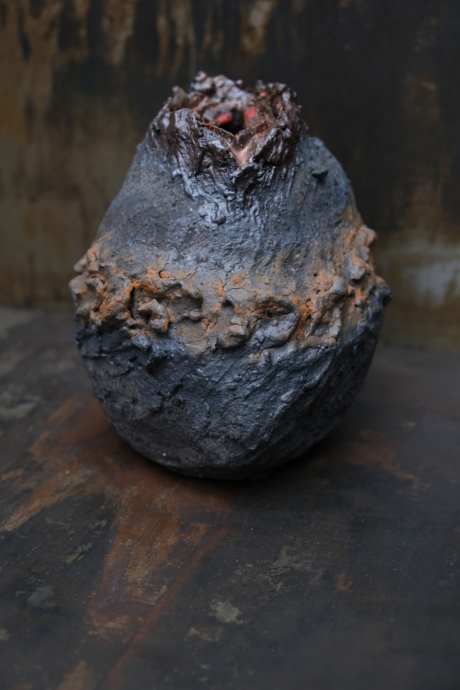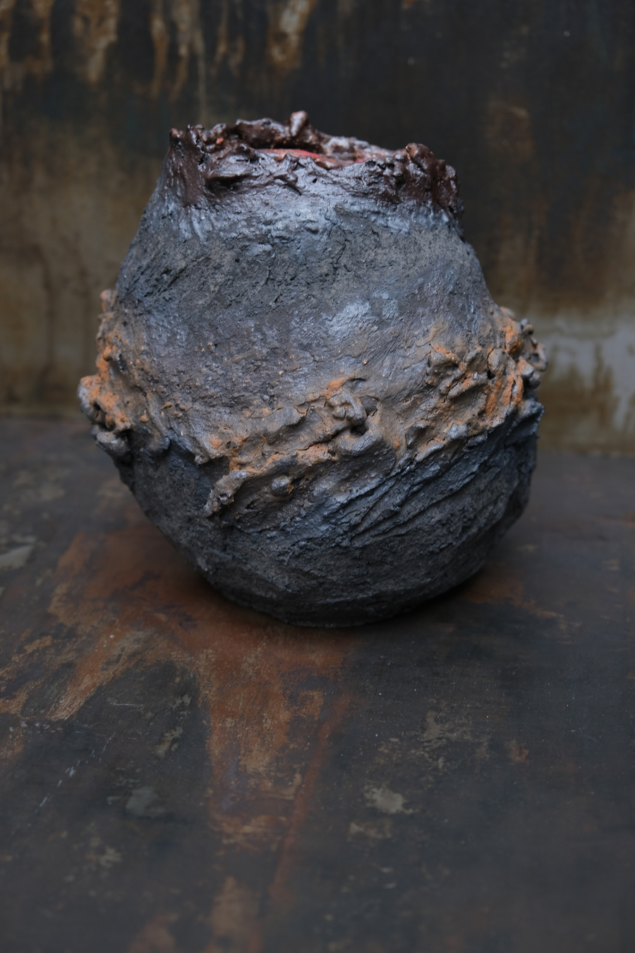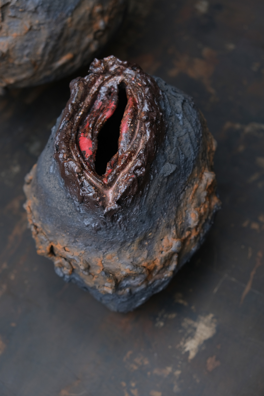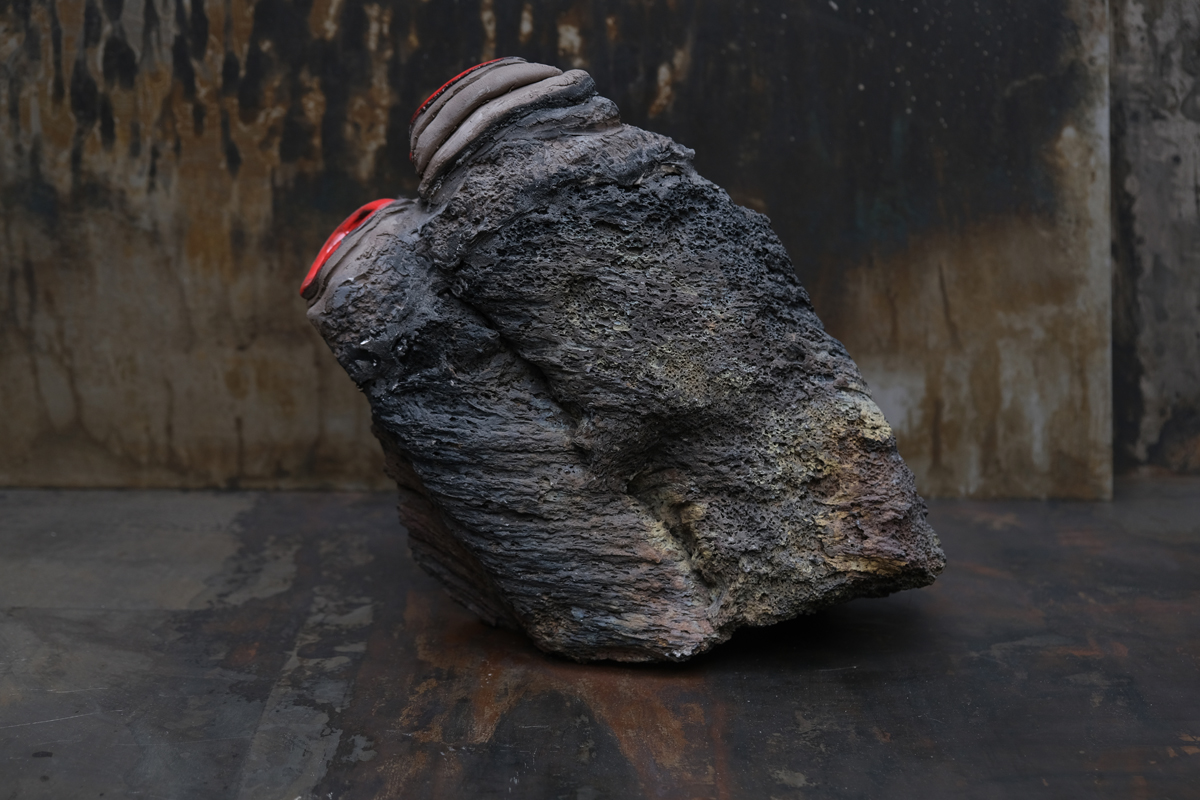 Ceramique émaillé sur roche volcanique / Glazed ceramics on volcanic rock.