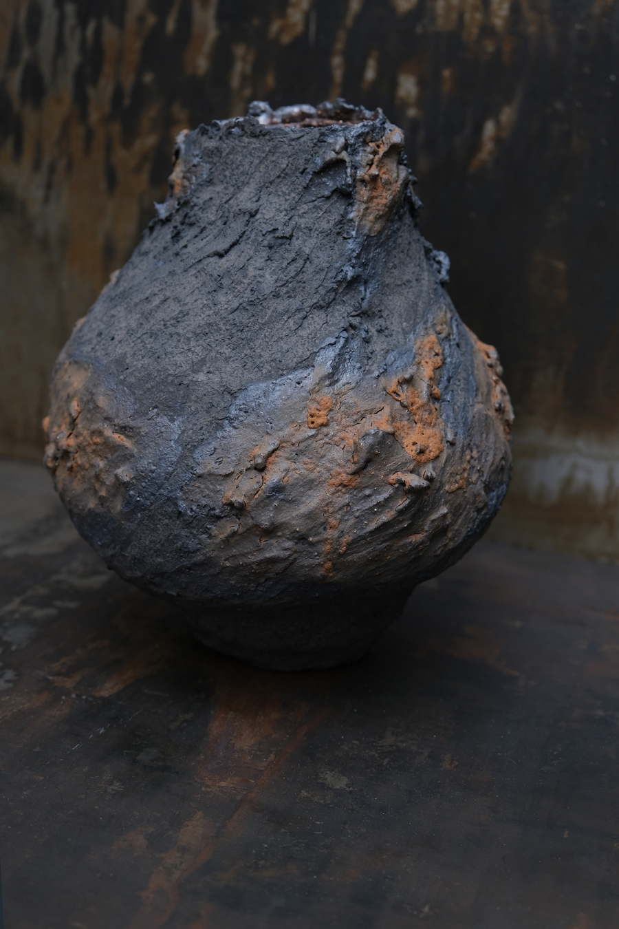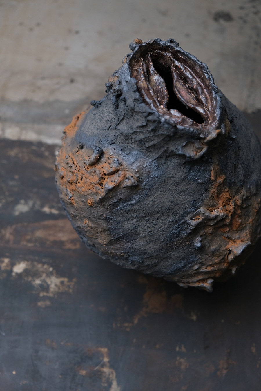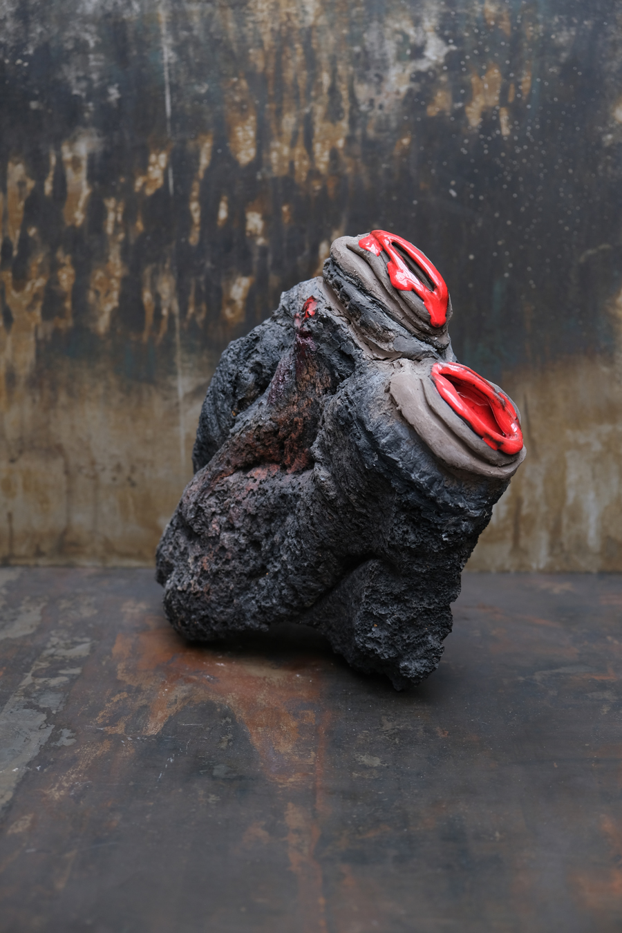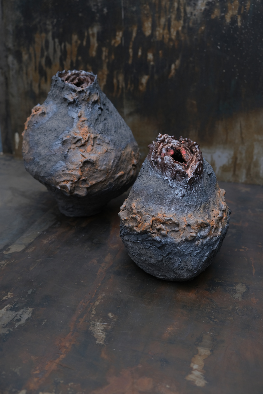 Ceramique émaillé sur roche volcanique / Glazed ceramics on volcanic rock.