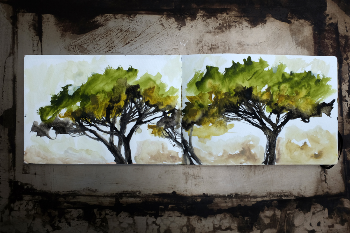 Peinture aquarelle & photographie argentique sur carnet moleskine /Watercolor painting & silver gelatin photography on a Moleskine sketchbook
