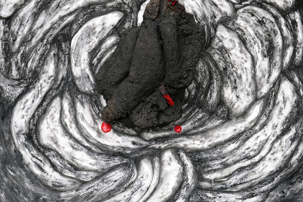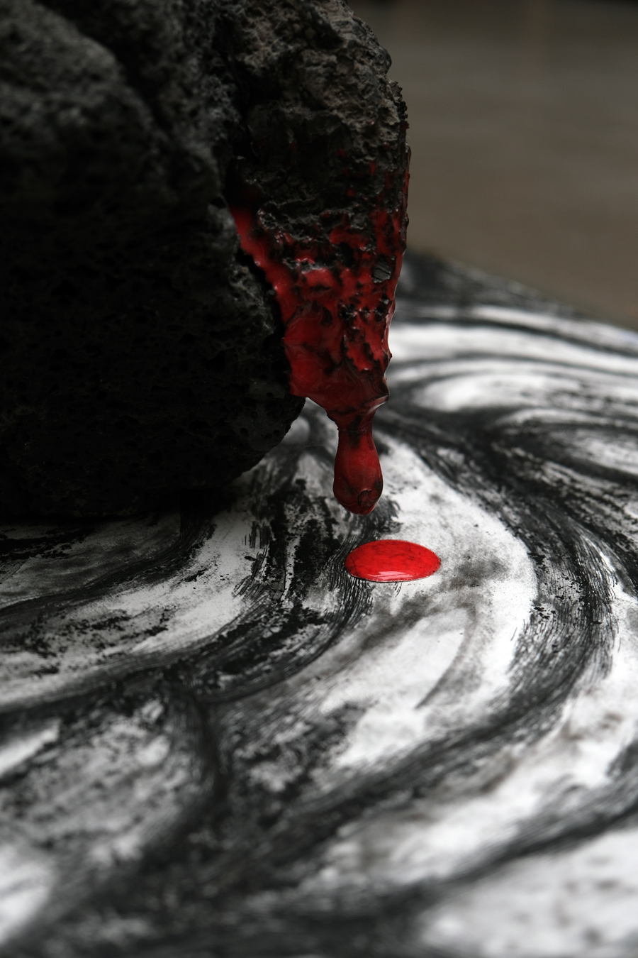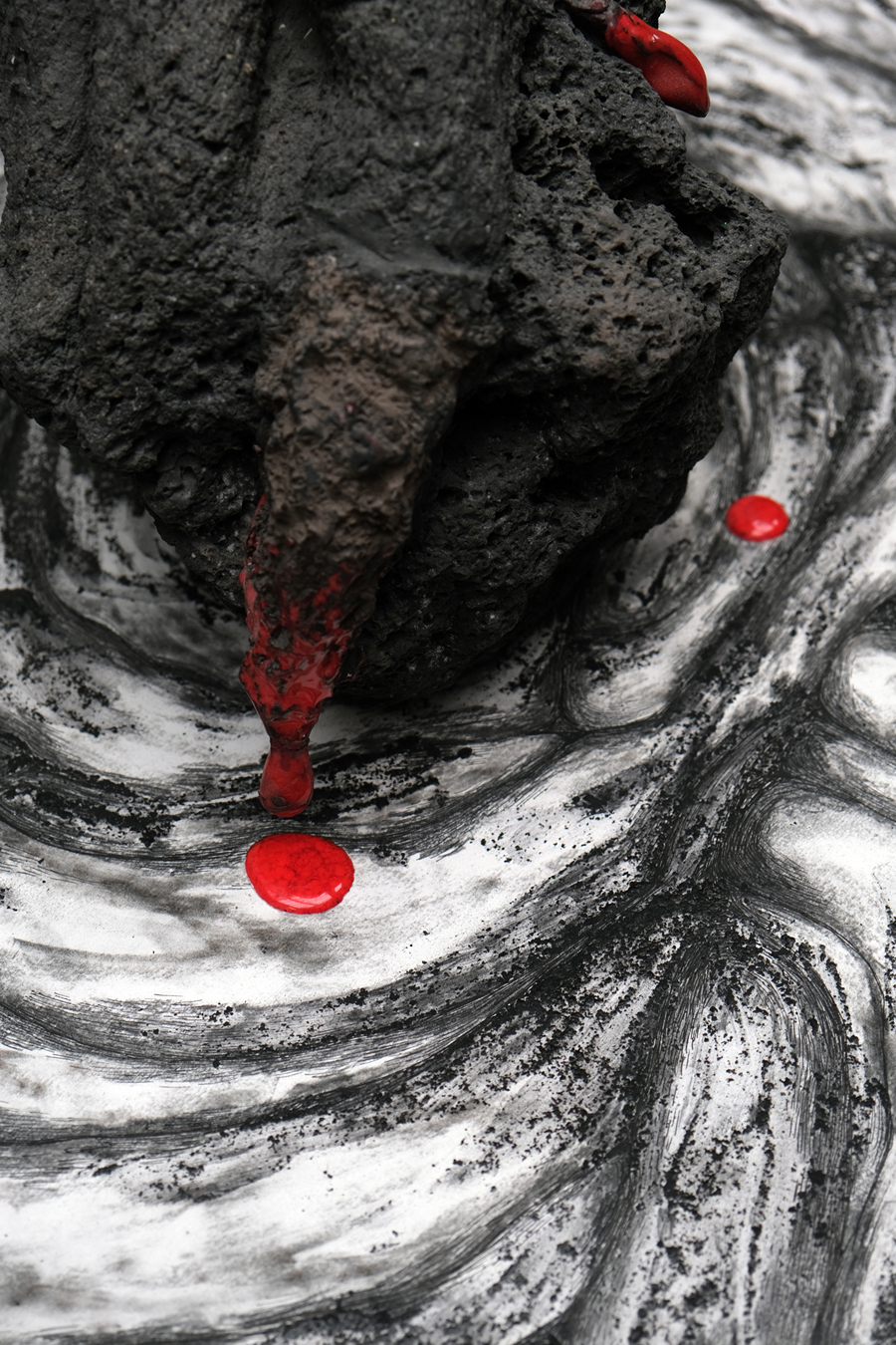 Métaphore créatrice, en tant qu’artiste je suis un volcan en sommeil jusqu’à éruption. Processus organique de la matière céramique qui imite la nature dans le four avec une réaction chimique équivalente à celle de la chambre magmatique. Coulée de lave et coulée d’émail, matière en fusion et un esprit proche de l’implosion.