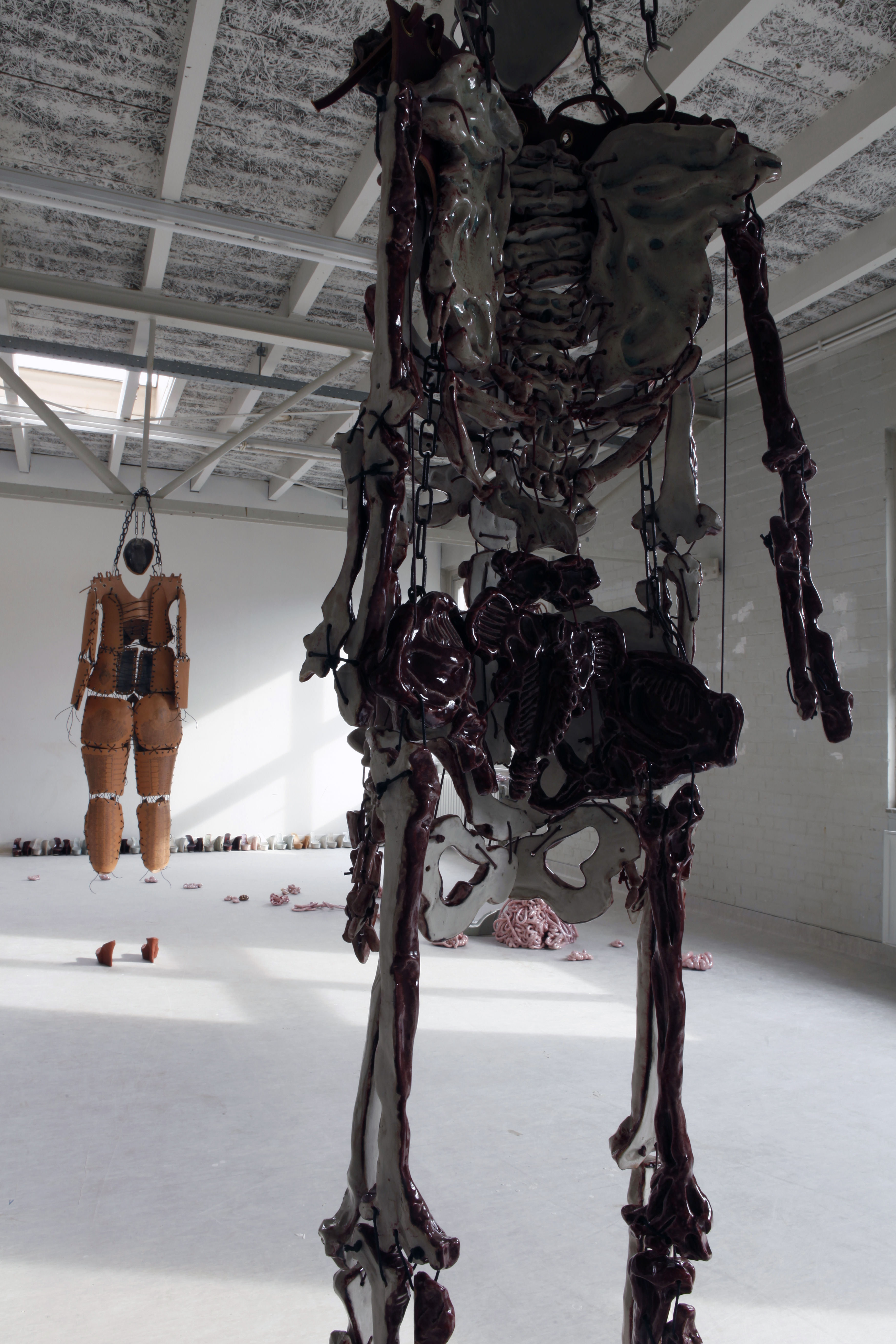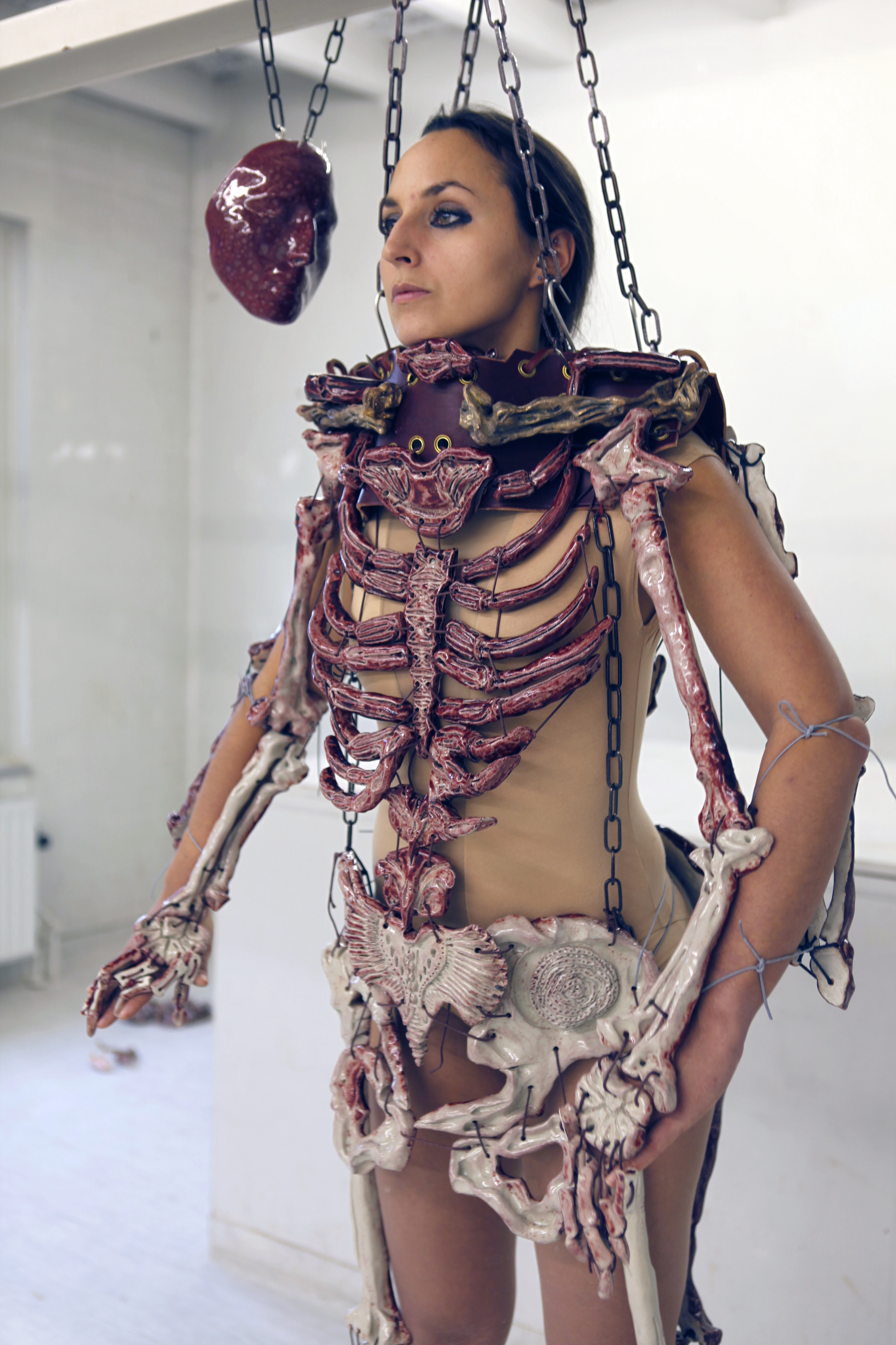 Finally the last strip tease, the skeleton is the final vanity, enamelled with 'ox blood' glaze, because as women we carry the blood of life deep within our being.