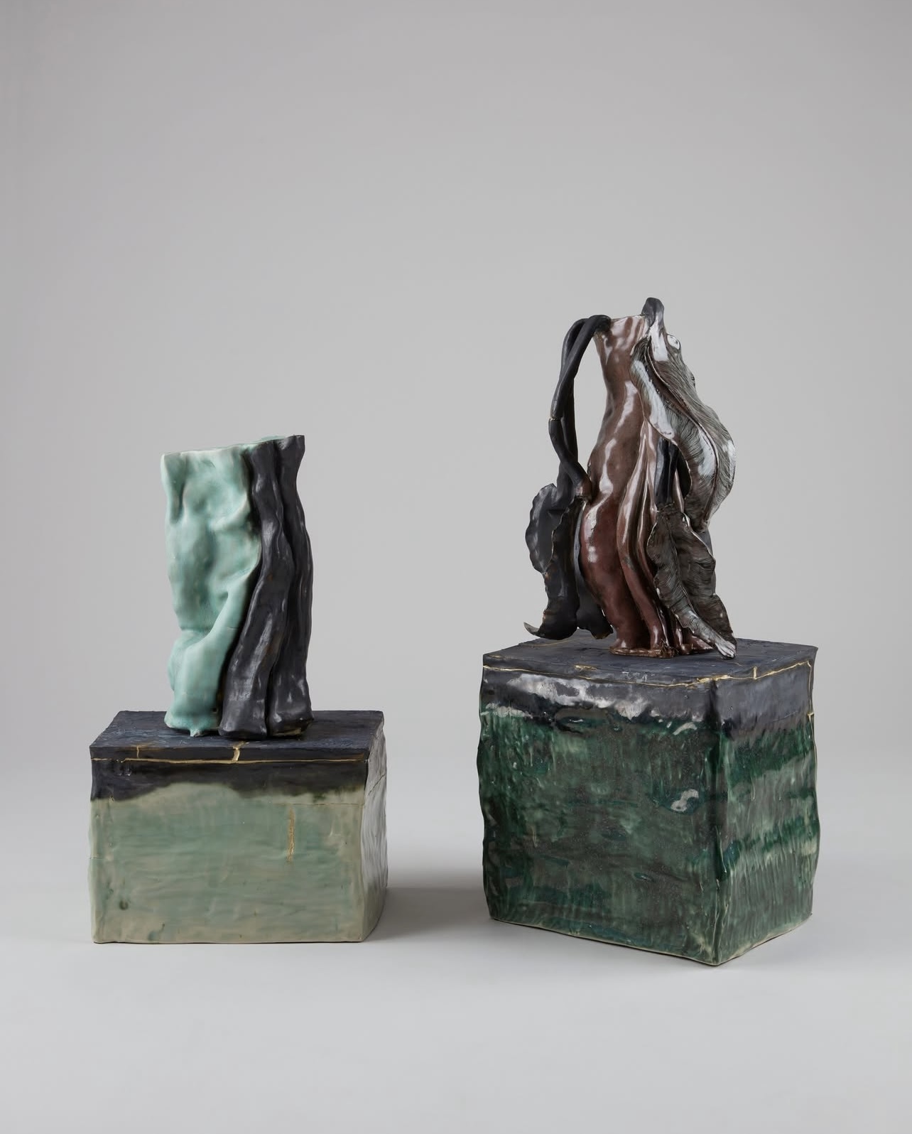 Grès porcelainé émaillé, vert de cuivre & empiètement céramique/// Copper green glazed porcelain stoneware & ceramics encroachment