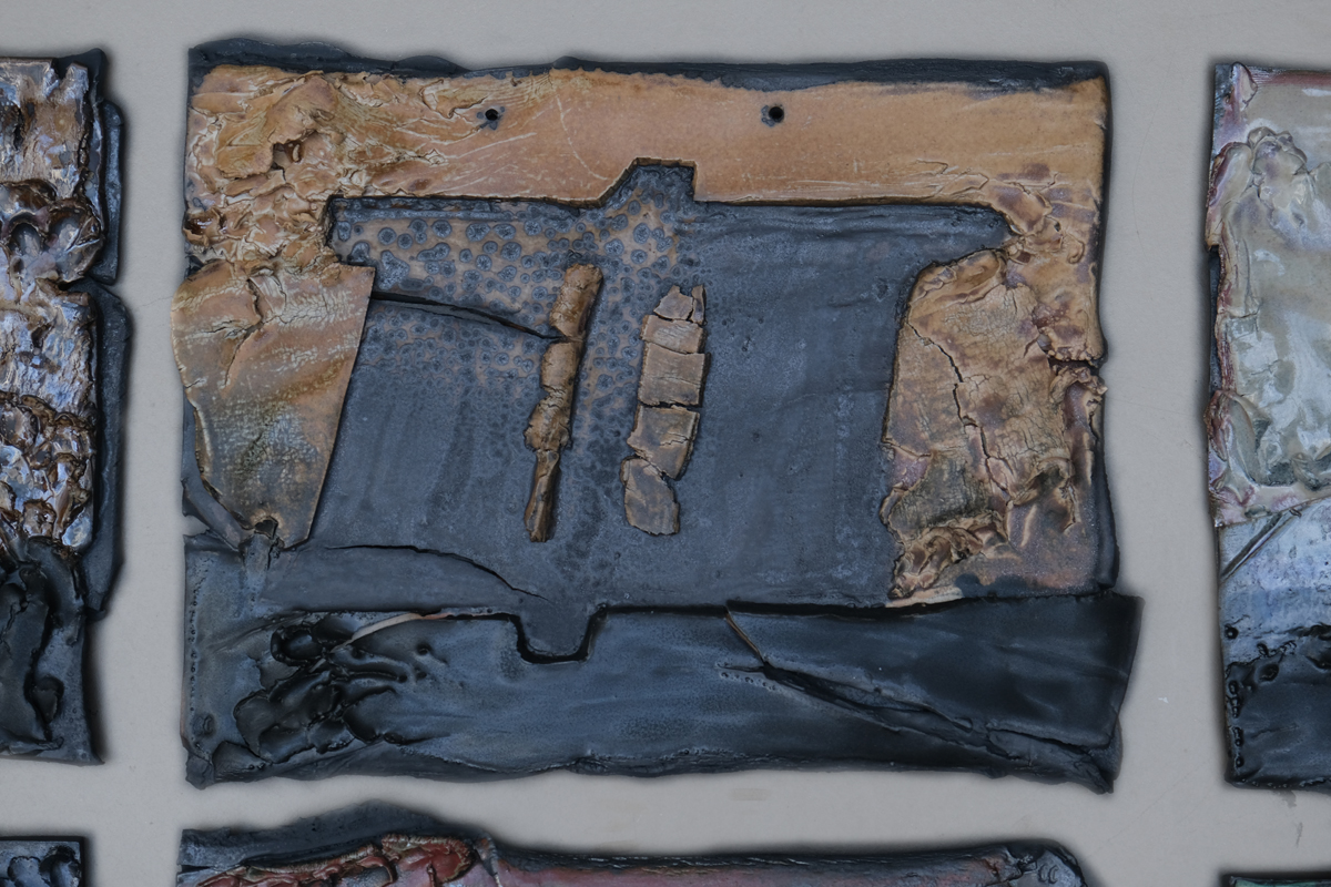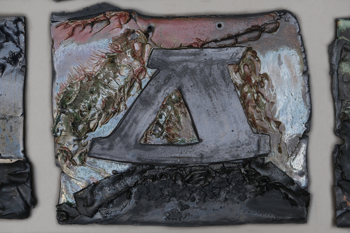 ‘Tableaux typographiques de céramiques sur le désir d’être un volcan.